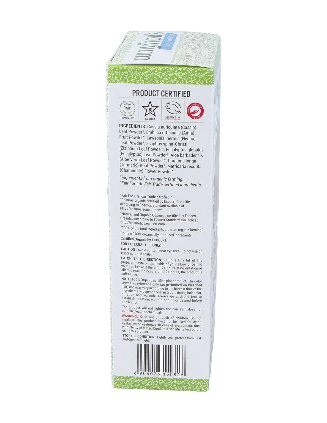 Coloración orgánica para el cabello con una cobertura del 100% de las canas, adecuada para mujeres y hombres. Las hierbas orgánicas contienen pigmentos colorantes naturales precursores y nutrientes para nutrir y acondicionar el pelo. Aumentan el brillo, la elasticidad y la suavidad del cabello. Producto vegano.