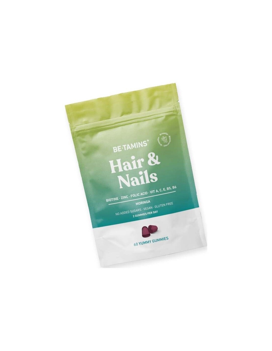Betamins+ Hair & Nails 60uds es un complemento alimenticio en forma de gominolas con biotina, zinc, ácido fólico y vitaminas, que ayudan a recuperar la melena y a mantener unas uñas bonitas.