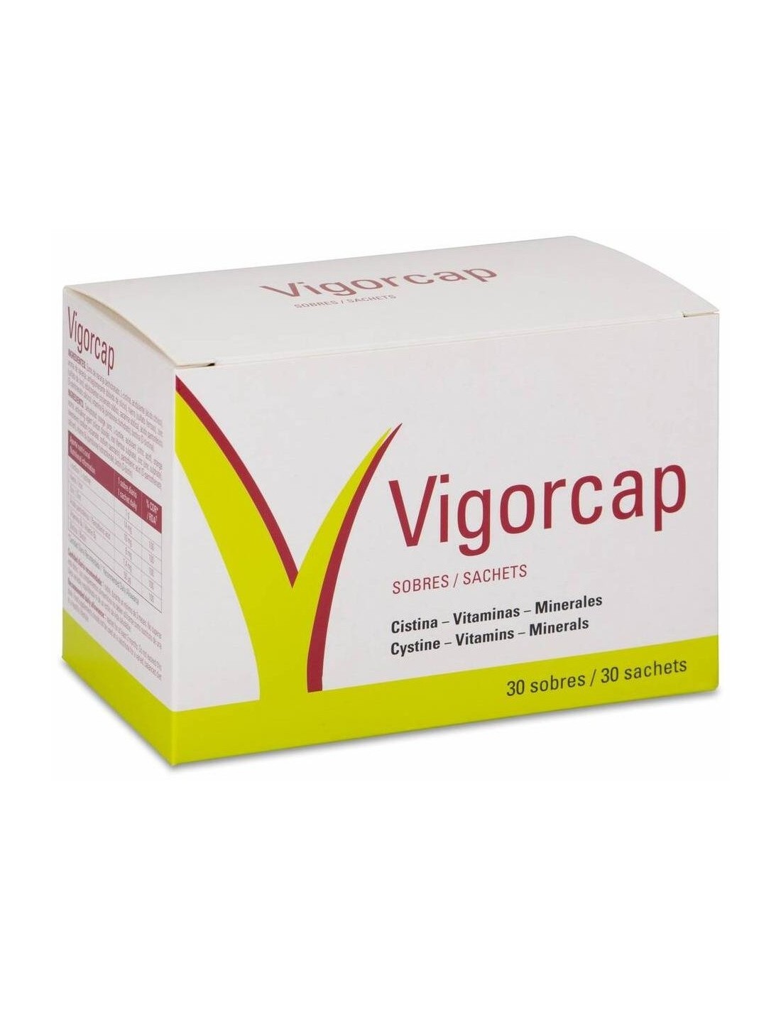 Vigorcap es un complemento alimenticio con una combinación equilibrada de elementos nutritivos para la nutrición de cabellos y uñas. Contiene L-cistina, zinc, hierro, ácido pantoténico, vitamina B6 y biotina. Una ingesta adecuada de zinc es uno de los factores que ayudan a mantener el cabello y las uñas en óptimas condiciones. La biotina es una vitamina cuyo aporte dietético suficiente contribuye al normal mantenimiento del cabello. La cistina es un aminoácido azufrado constitutivo de la queratina.