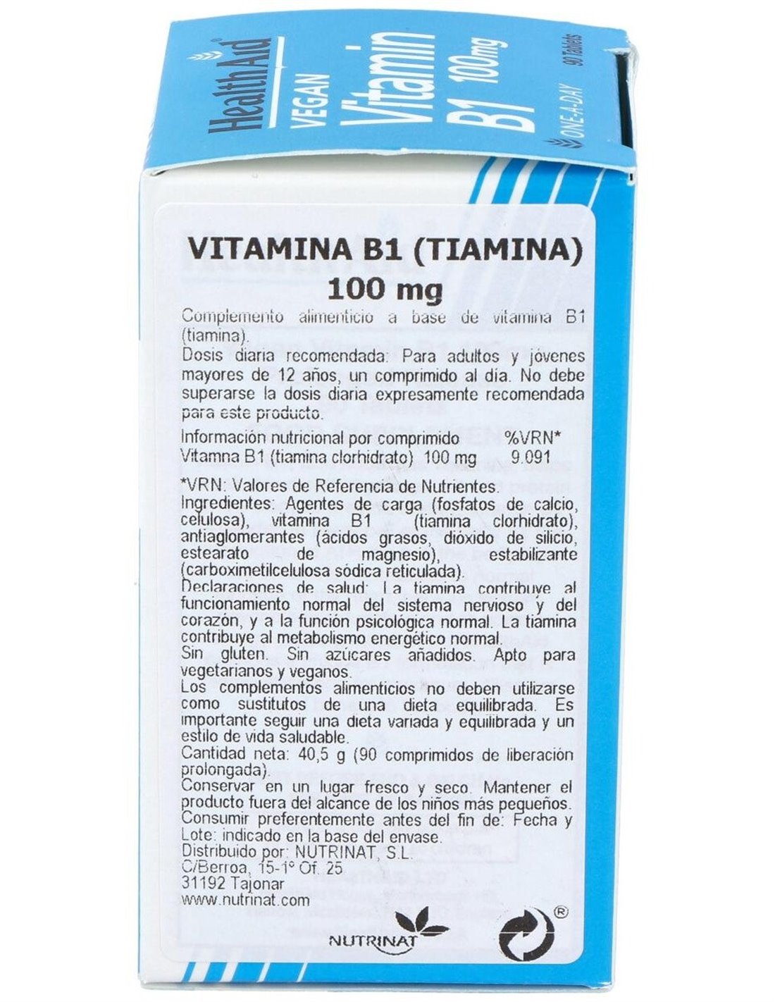 Vitamina B1 (Tiamina) 100 Mg 90 Comp de Health Aid