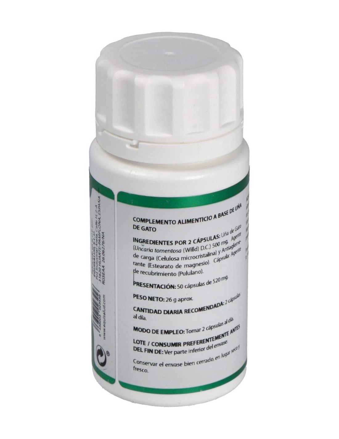 Equisalud uña de gato es un complemento alimenticio que contribuye al funcionamiento óptimo del sistema inmunitario. Está compuesto por uña de gato, un potente antiiflamatorio natural originario de Perú.