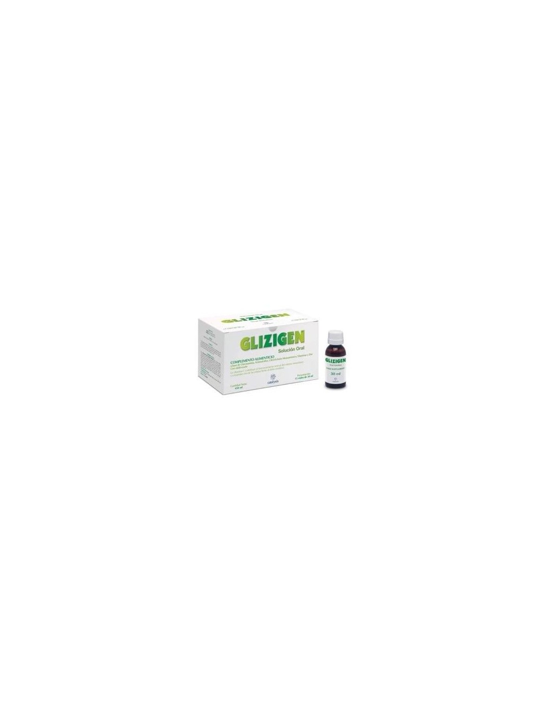 Complemento nutricional con ácido glicirricínico activado, vitaminas, minerales y aminoácidos. Contiene ácido glicirricínico activado y vitaminas y minerales. El Zinc, vitaminas C, B6 y B12 contribuyen al funcionamiento normal del sistema inmune. Zinc y vitamina C ayudan al mantenimiento de una piel normal y protegen frente al estrés oxidativo.\ \ El producto Glizigen solución oral se ha desarrollado para apoyar el normal mantenimiento de la piel y del sistema inmune, gracias a que contiene una variedad de vitaminas, como la vitamina C, que contribuye a mantener el normal funcionamiento del sistema inmunológico y a proteger las células frente al daño oxidativo, así como el Zinc, que ayuda a la normal función de la piel.\ En resumen, Glizigen es un producto con una composición altamente mejorada, para aquellos que buscan ayudar, así como aportando nutrientes para dar apoyo a su sistema inmune y al bienestar general.
