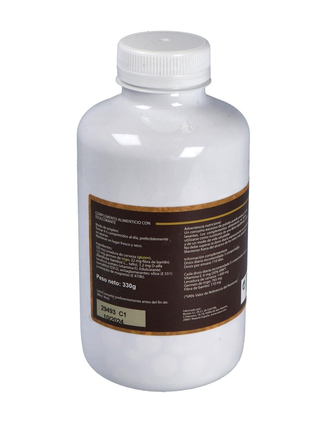 *Cada comprimido contiene 325mg de levadura de cerveza y 175mg de germen de trigo